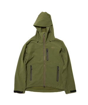 優れたストレッチ性、通気性があり、一般的な防水ハードシェルのようなゴワつきは一切ありません。防水ハードシェル特有の硬めの質感が苦手な方、山登りなどよりアクティブに活動される方に特にオススメ。